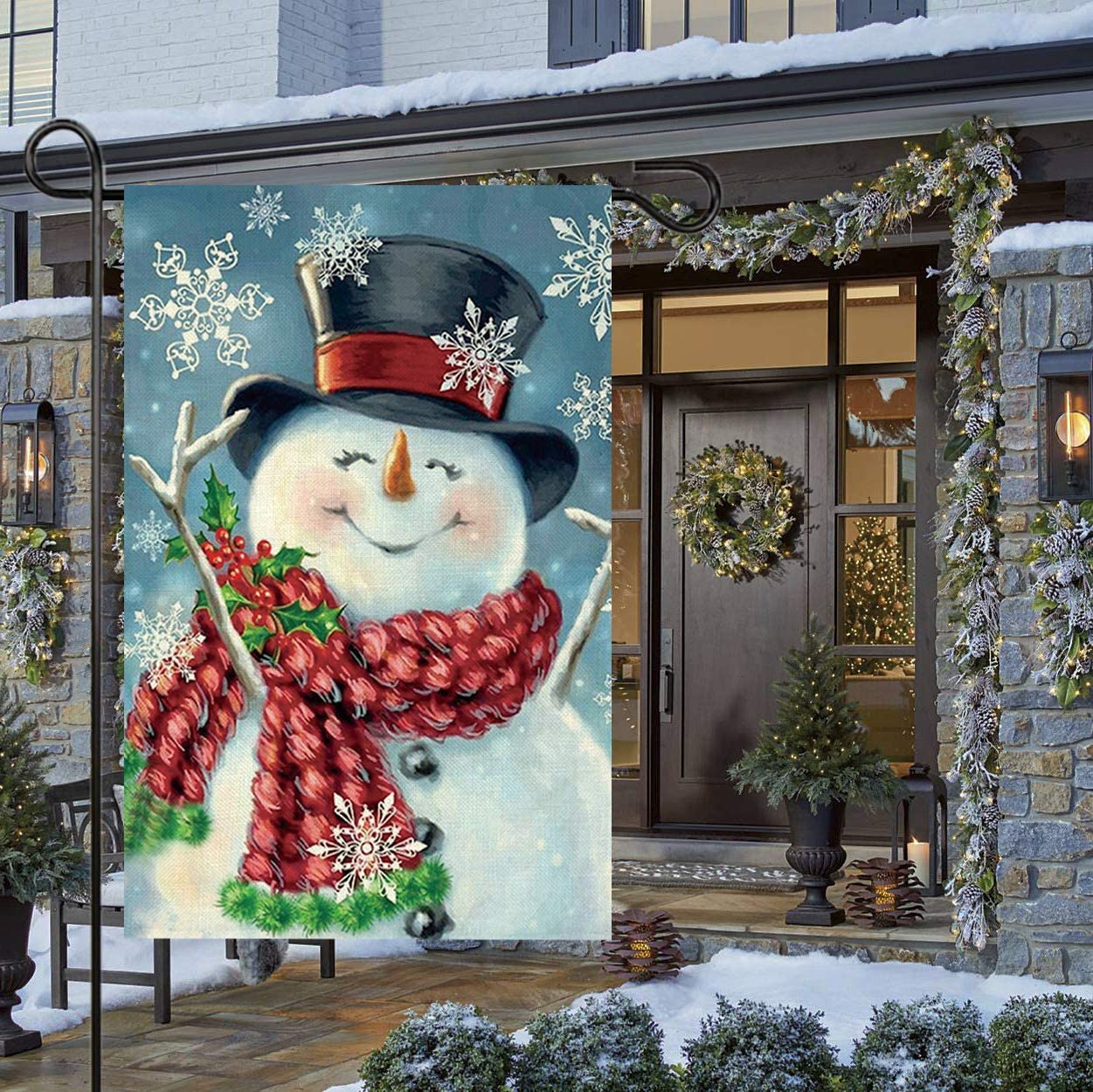【PERFECT GIFTS】The snowman design Garden Flag is a sign for greetings and a great way of celebrating Christmas with your family, friends, kids and neighbors. And this decorative flag can widely fit any standard Flagpole or Stand.