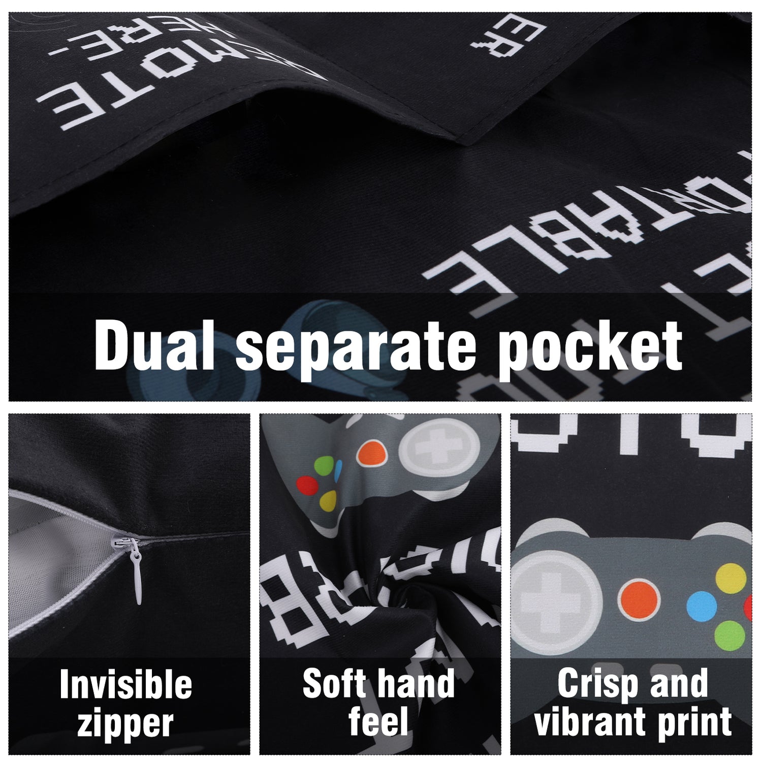 【Nice Touch Fabric】This gamer pillow cover is 18x18 inches long and wide, and made of super plush and nice touch fabric. With the invisible zipper, you can even tell it has a zipper. It’s super soft and durable enough for indoor or outdoor use. Rest your arms on it while playing and reduce shoulder strain.