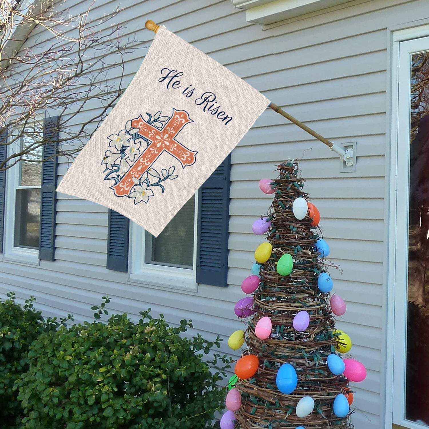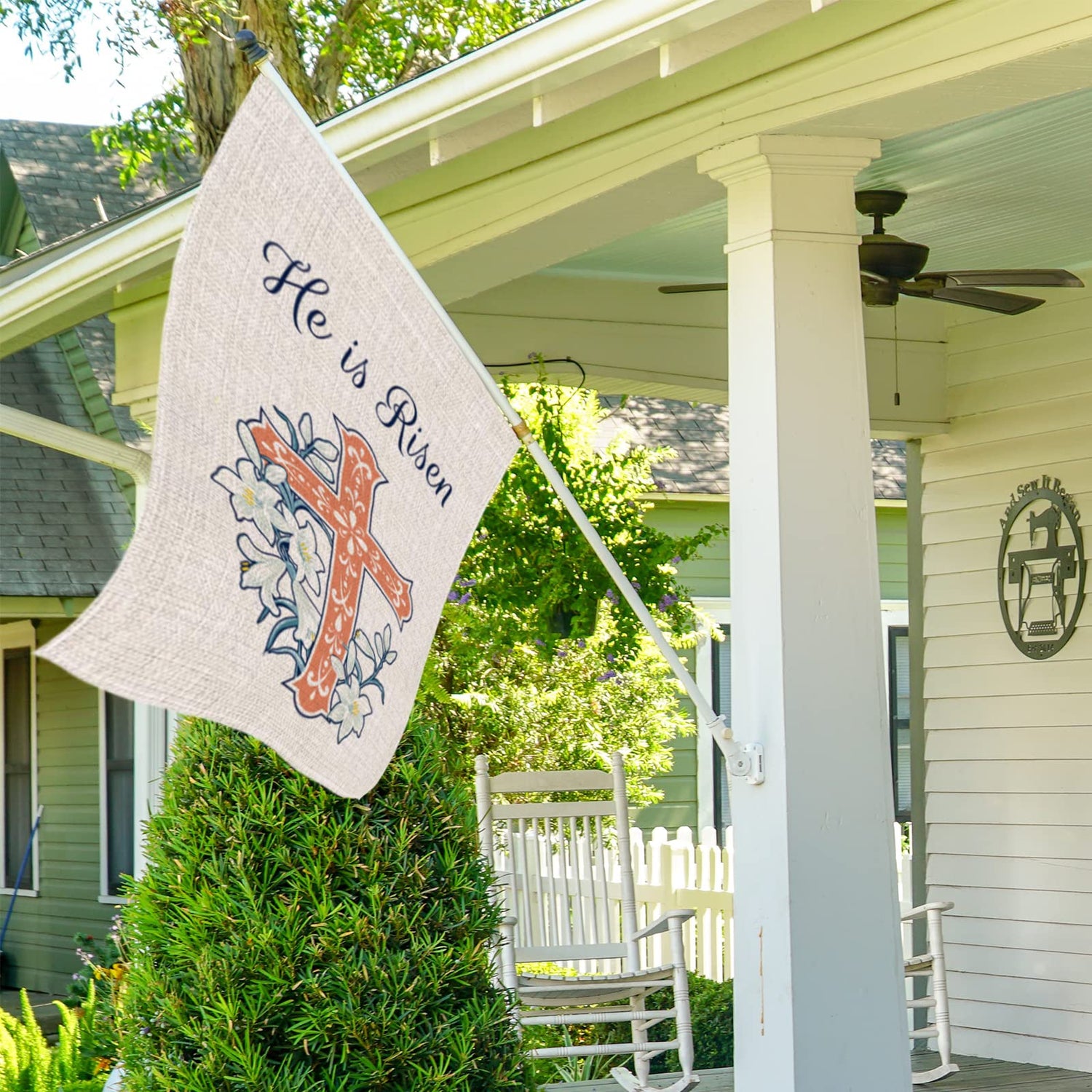 GOAUS He is Risen Cross and Lilies Easter Large House Flag,Double Sided Burlap Decorative Spring Garden Flags for Home Lawn Yard Indoor Outdoor Decor,28 x 40 Inch