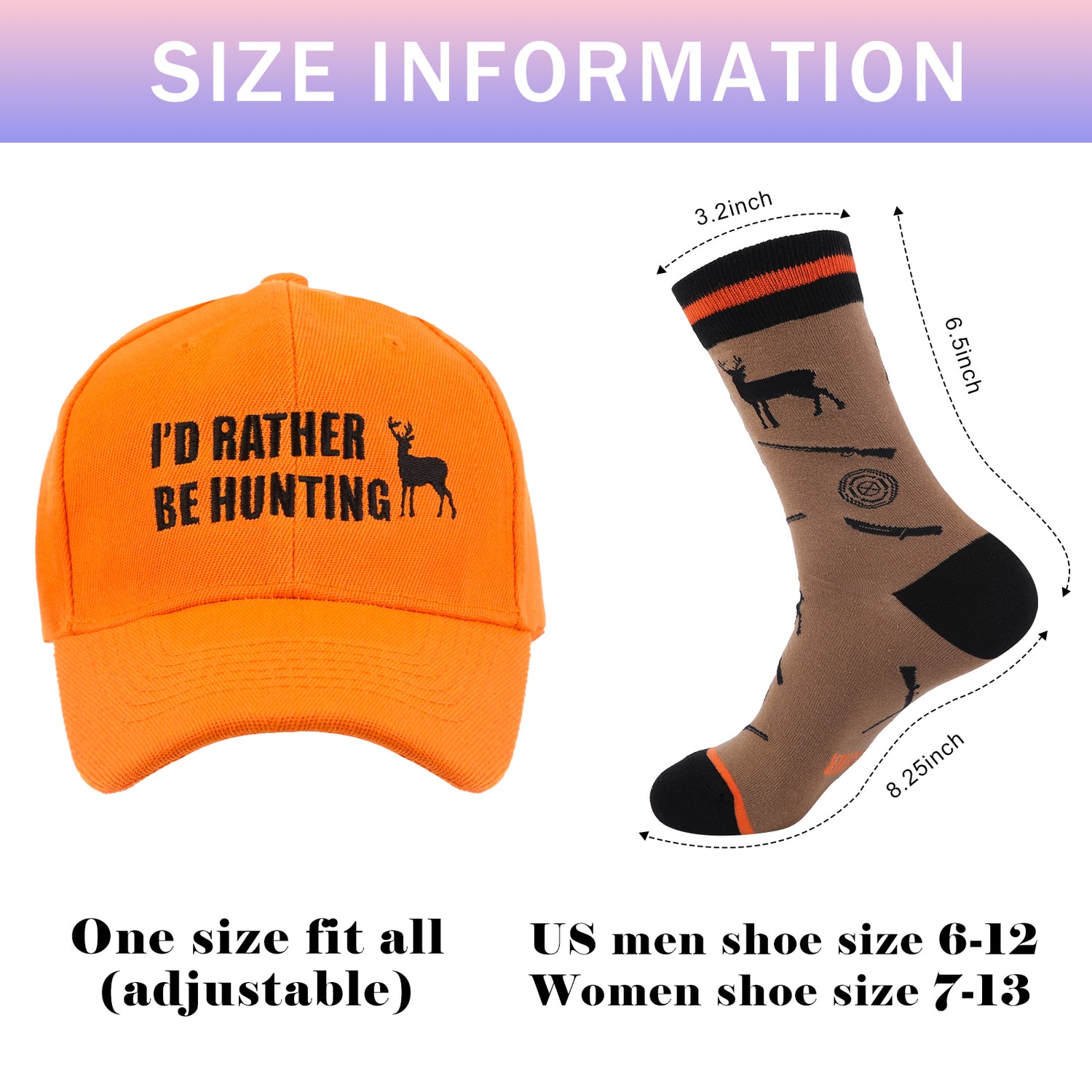 【Unique Hunter Gifts】This pack contains a hunter hat and a pair of funny hunting socks that makes outdoor hunting so much fun. We do recommend this combo pack as a present or a stocking stuffer for any hunter men, hunting lovers!