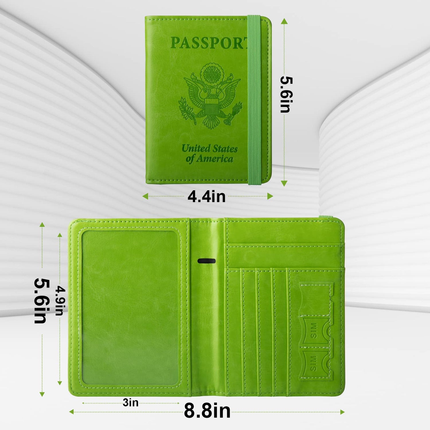 GOAUS Passport Holder with Money Pocket and Card Slots, Men Women Passport Wallet, RFID Blocking Passport Cover, Passport Book Case Green