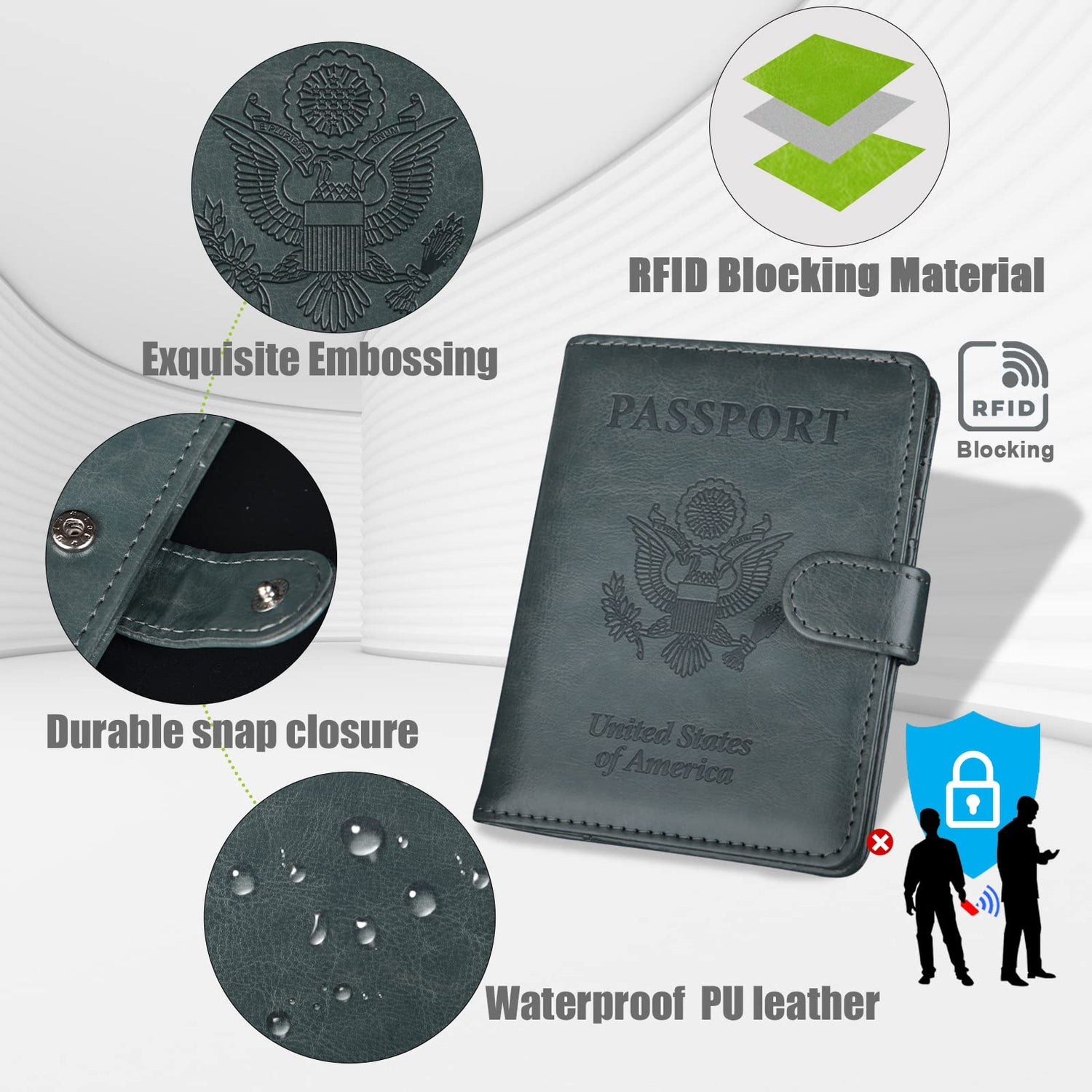 GOAUS Passport Holder with Money Pocket and Card Slots, Men Women Passport Wallet, RFID Blocking Passport Cover, Passport Book Case Grey
