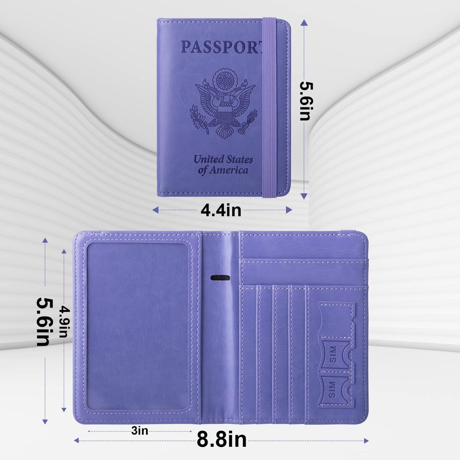 GOAUS Passport Holder with Money Pocket and Card Slots, Men Women Passport Wallet, RFID Blocking Passport Cover, Passport Book Case Purple
