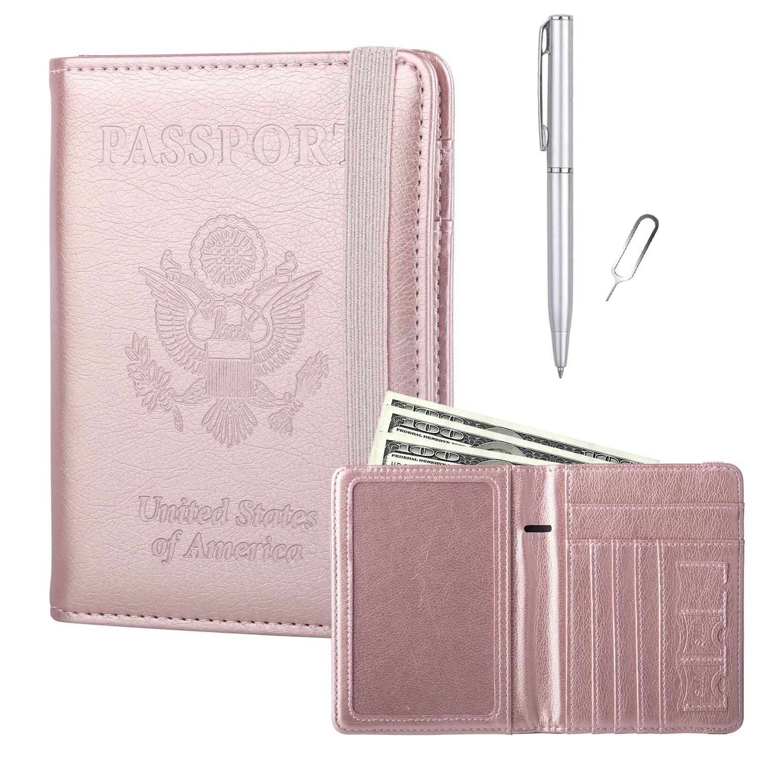 GOAUS Passport Holder with Vaccine Card Slot, RFID Blocking Passport and Vaccine Card Holder Combo, Travel Wallet Cover Case Book with Elastic Band…
