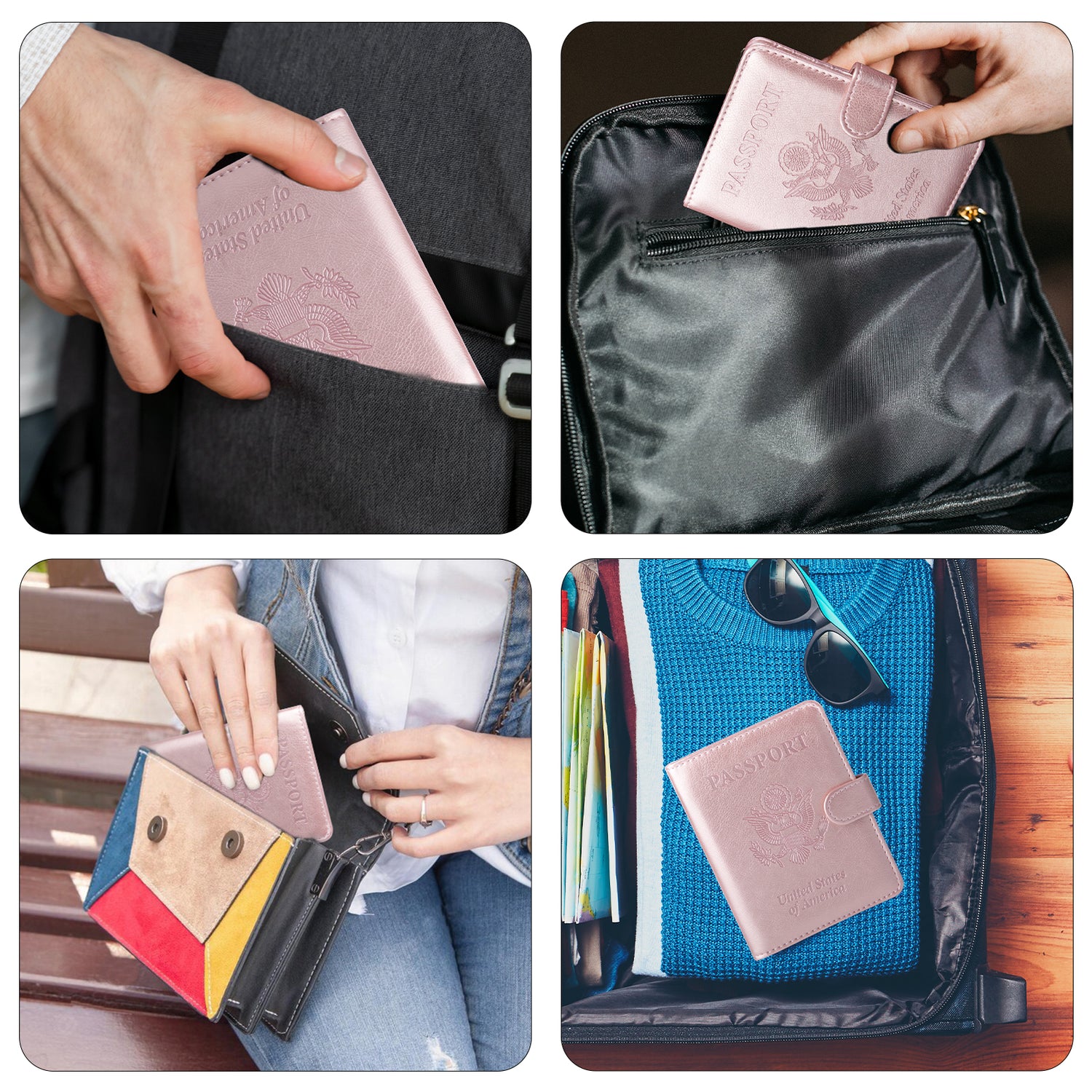 RFID Blocking Protection— We fully consider carry-on personal information inside men’s or women’s passport holder ultimate security throughout all stages of the journey. What we do is to embed anti-theft RFID blocking technology sleeves into passport book. When you place your documents inside passport holder with RFID blocking, your personal data would be protected from theft or illegal scanning.