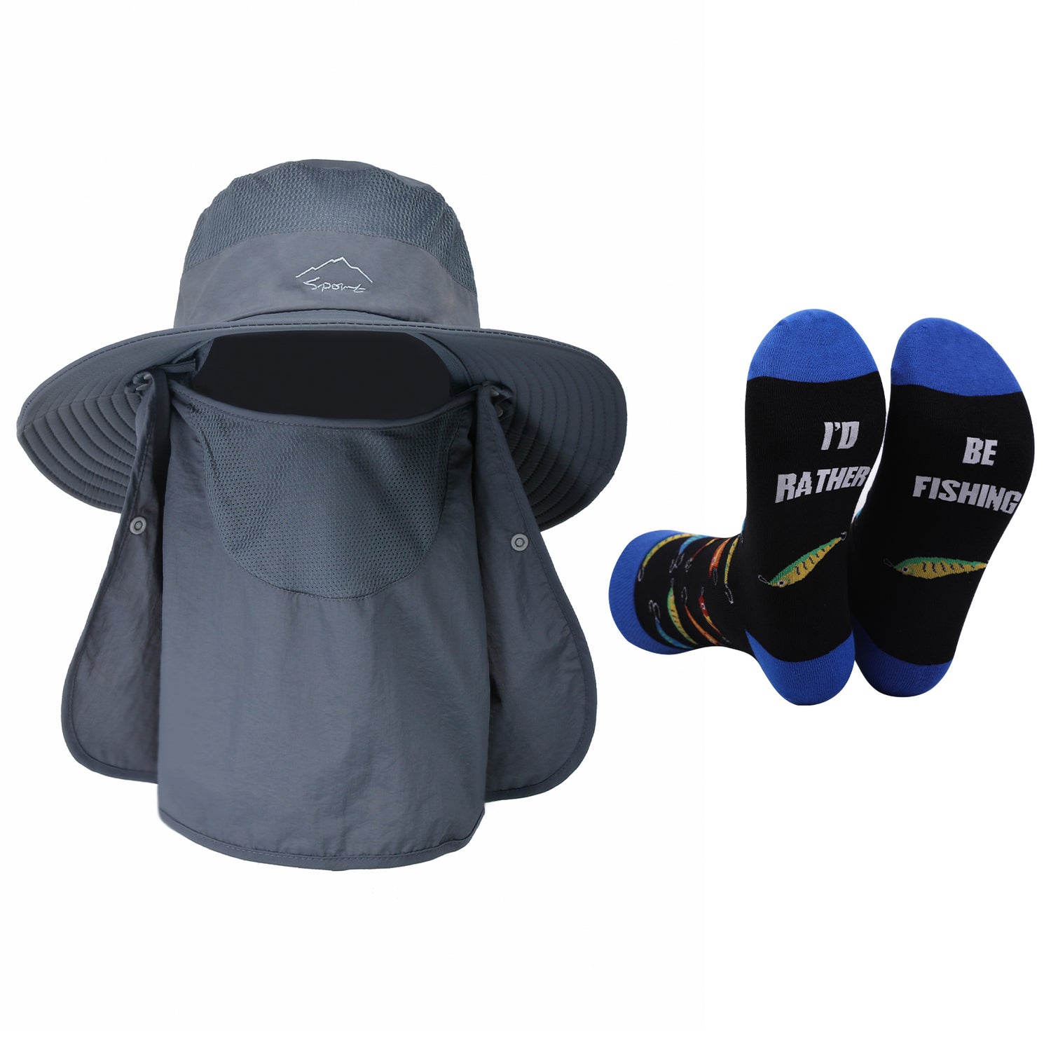 【Men Gift Idea】The wide brim fishing hat is windproof and waterproof with UPF50+ UV protection; it helps protect you from the sun rays. The bucket hat and socks set is not only a fisherman's gift, but also an everyday sun hat for men while hiking, safari, gardening, fishing, hunting, trawling, boating, camping, etc.