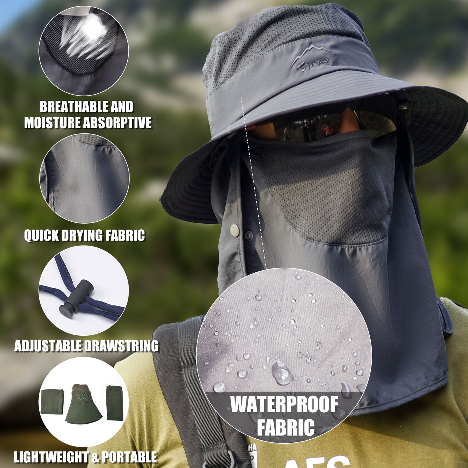 【Breathable Floppy Hat】The outdoor fishing cap has a face cover and neck flap, and can fit most sizes of heads with an adjustable drawstring closure; It is lightweight, foldable and easy to pack. Made of elegant and breathable quick-drying fabric, it keeps you super cool and sweat-free when it's hot and humid outside.